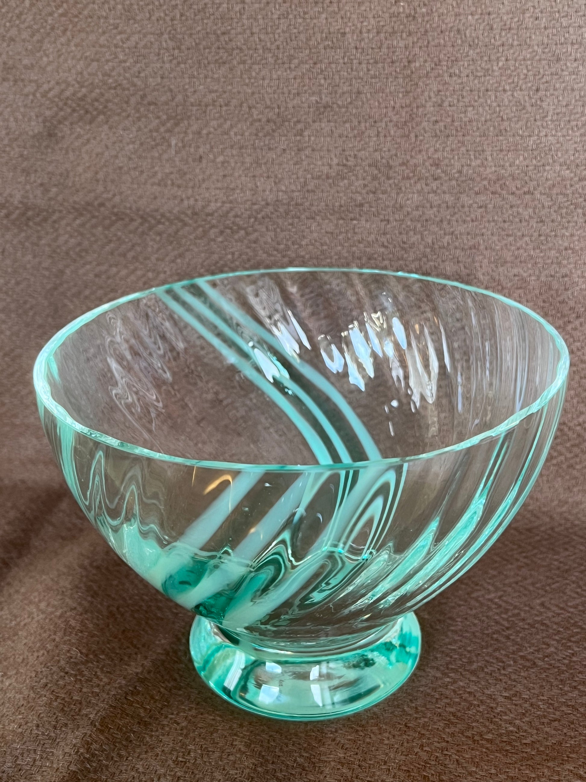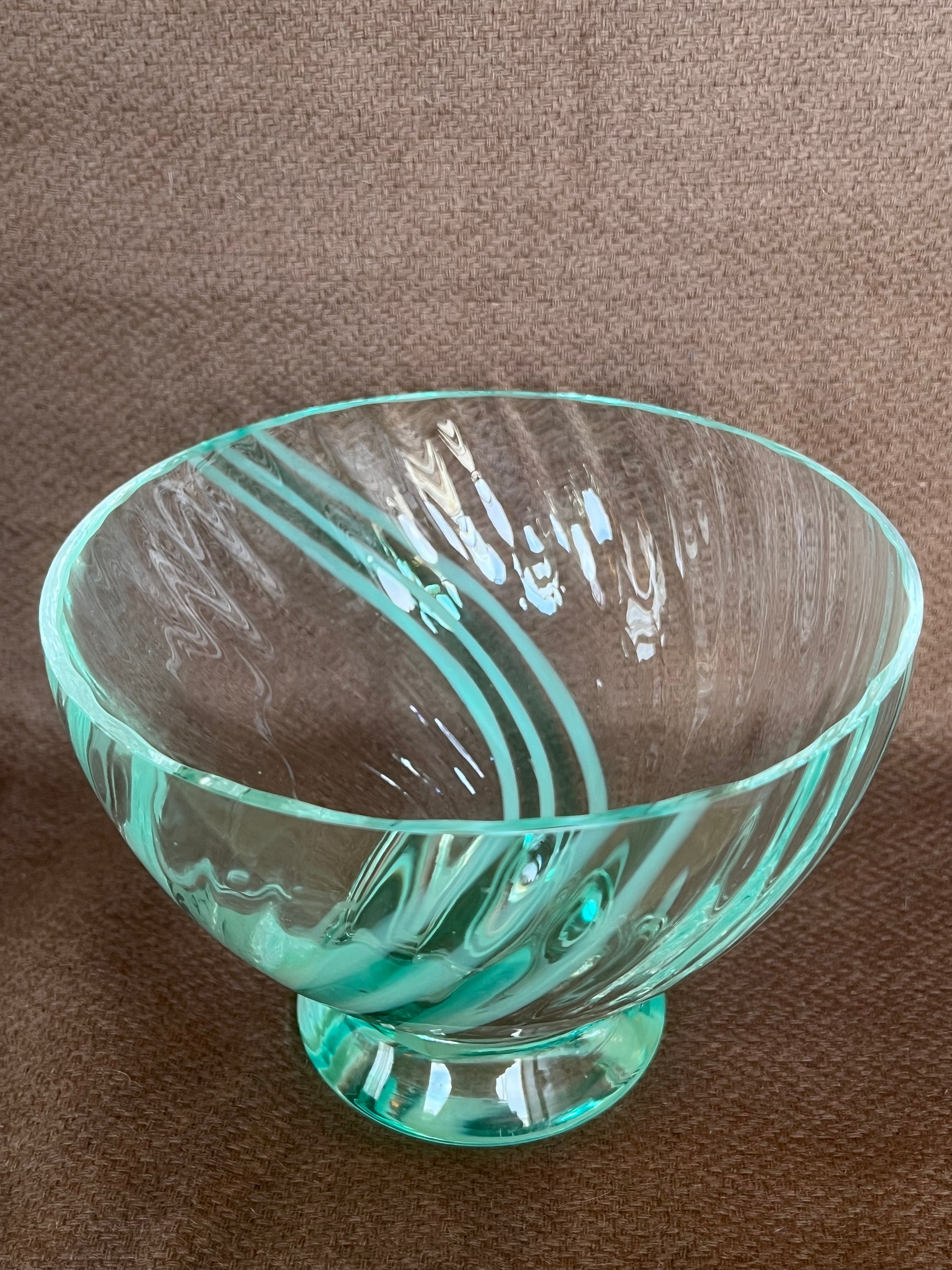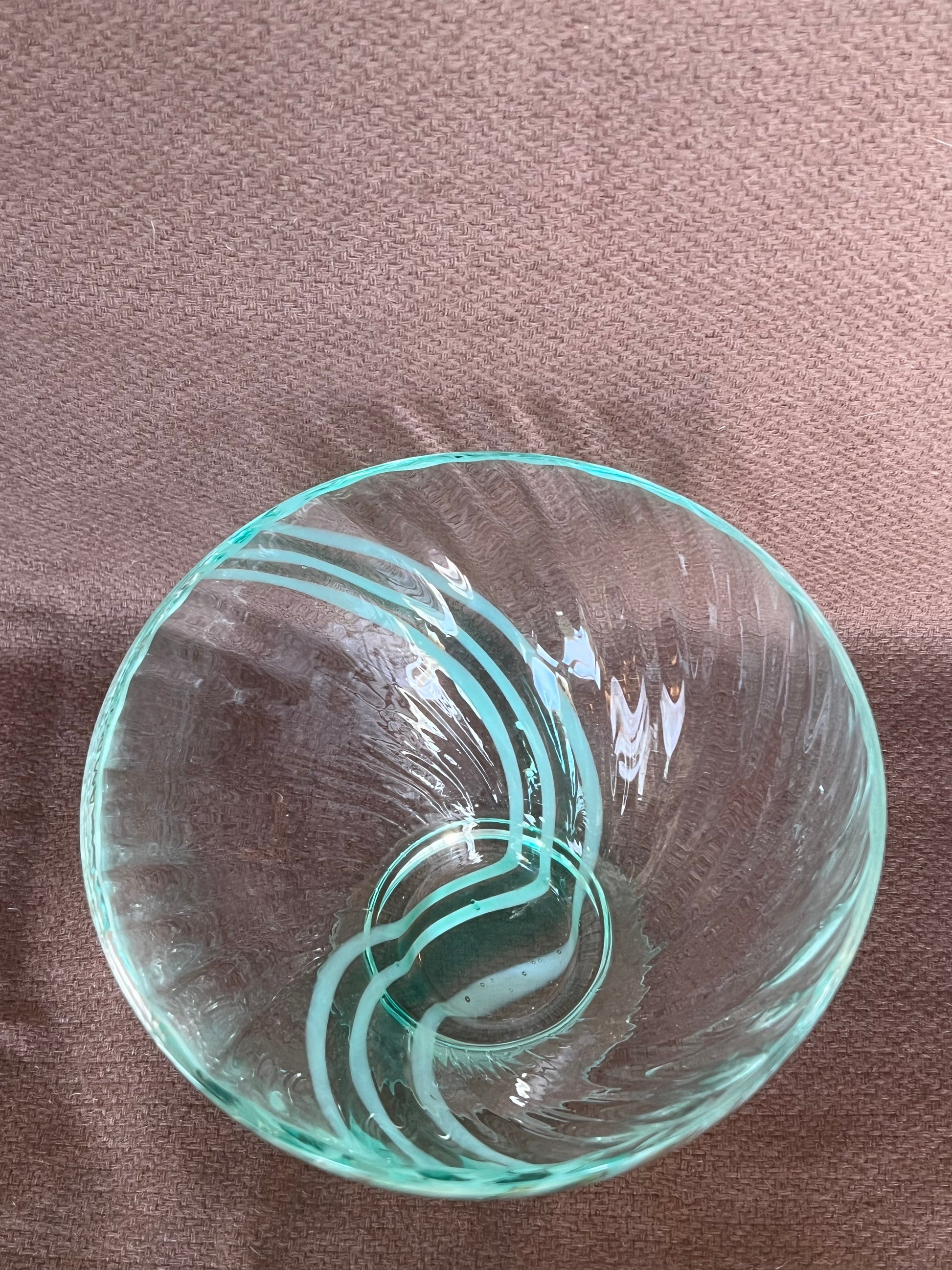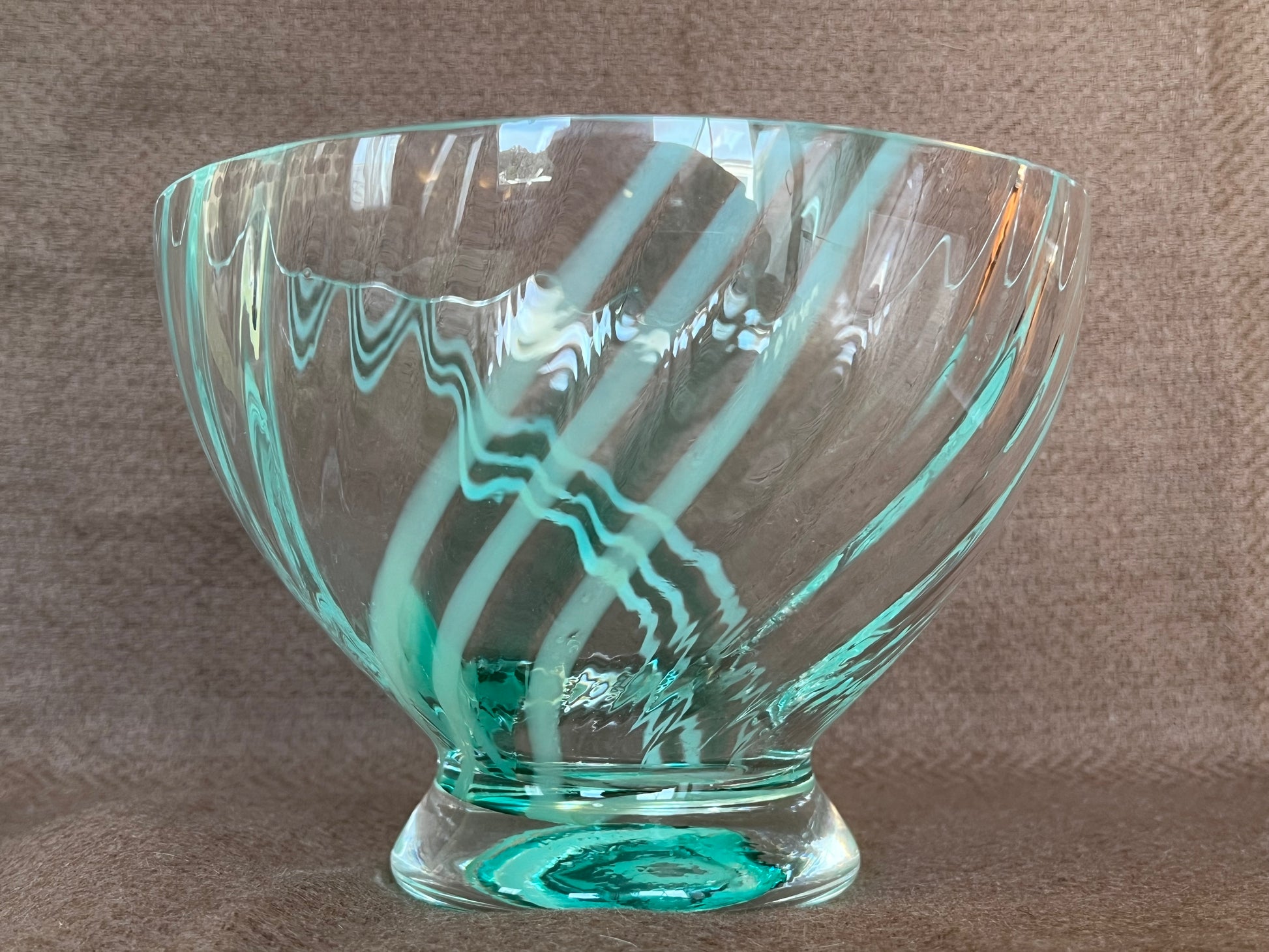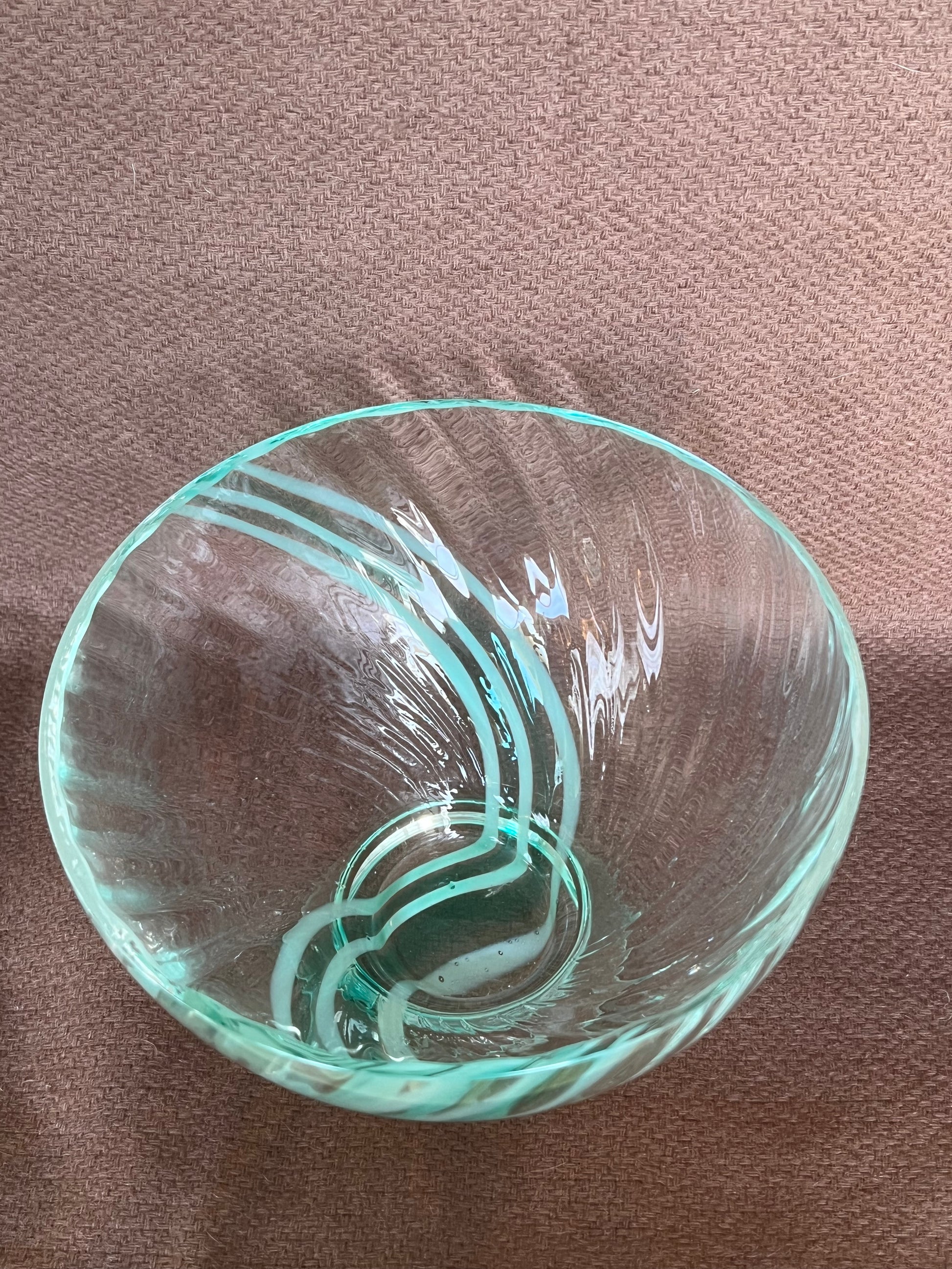 Caithness seaglass large glass swirl bowl with green/turquoise colours in excellent condition. The approximate measurements are: