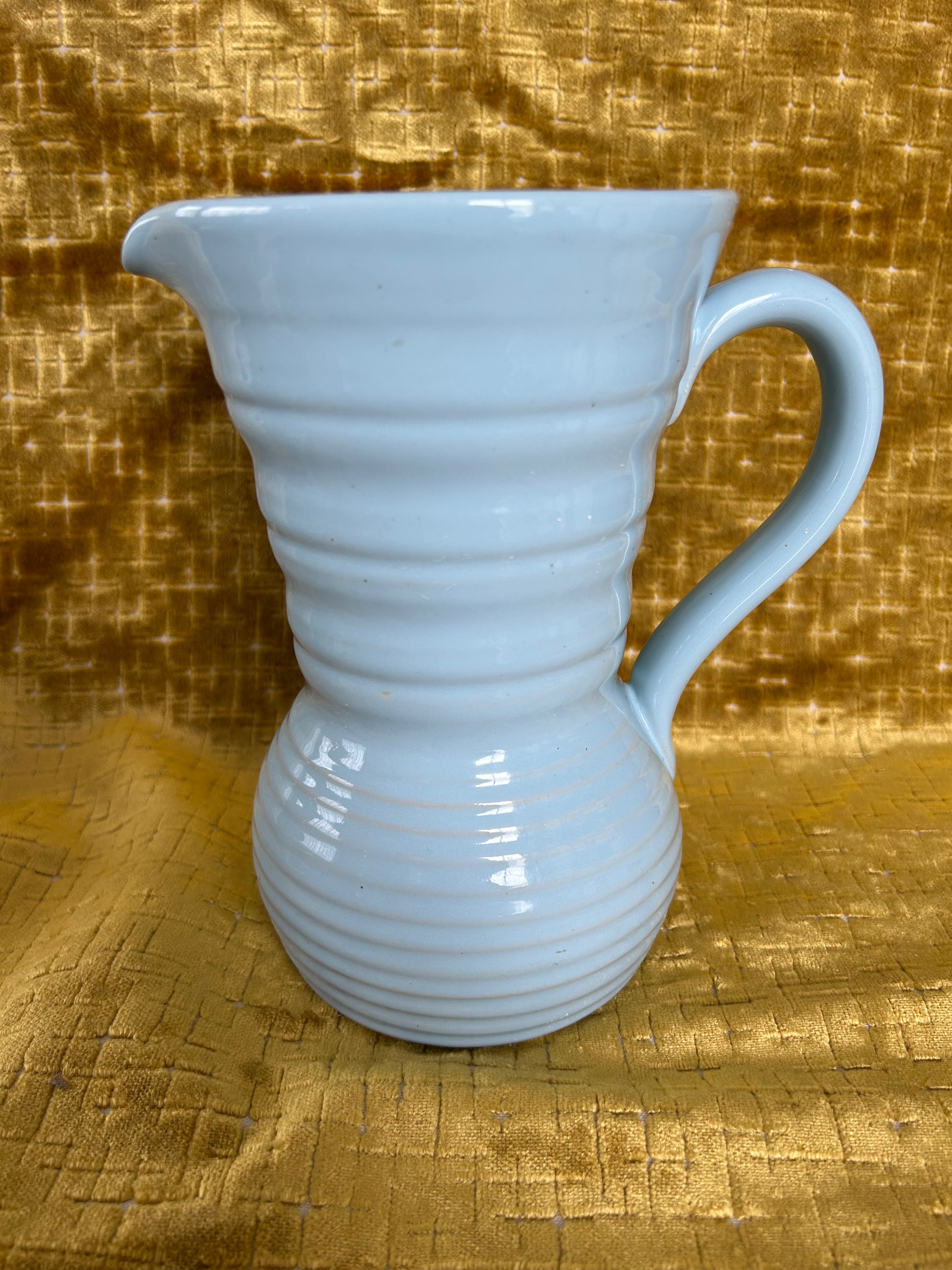 Lovatts Vintage Ceramic Ribbed Jug Pitcher In Pale Blue