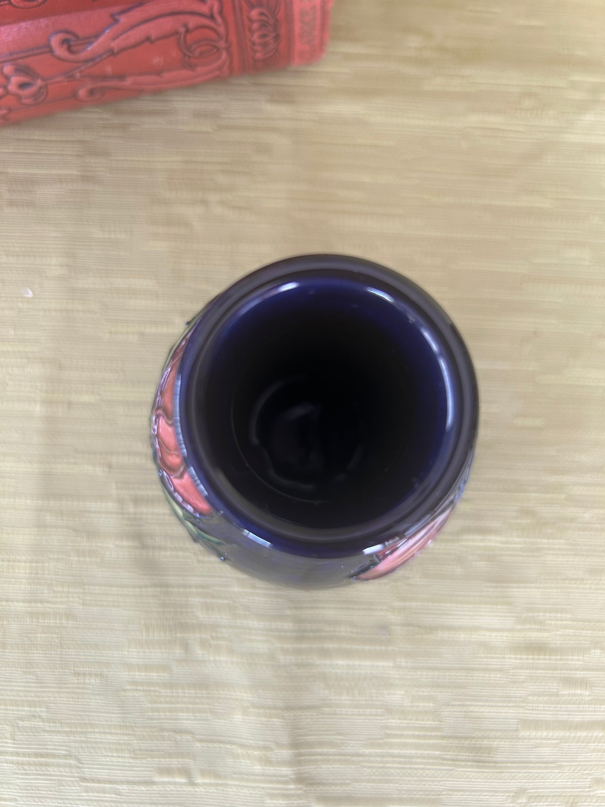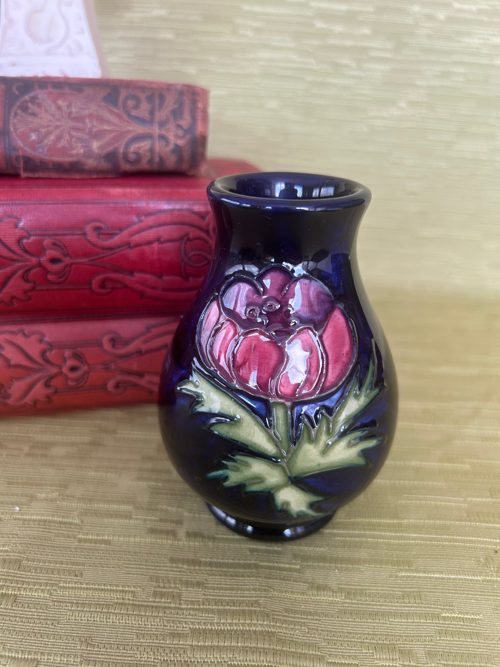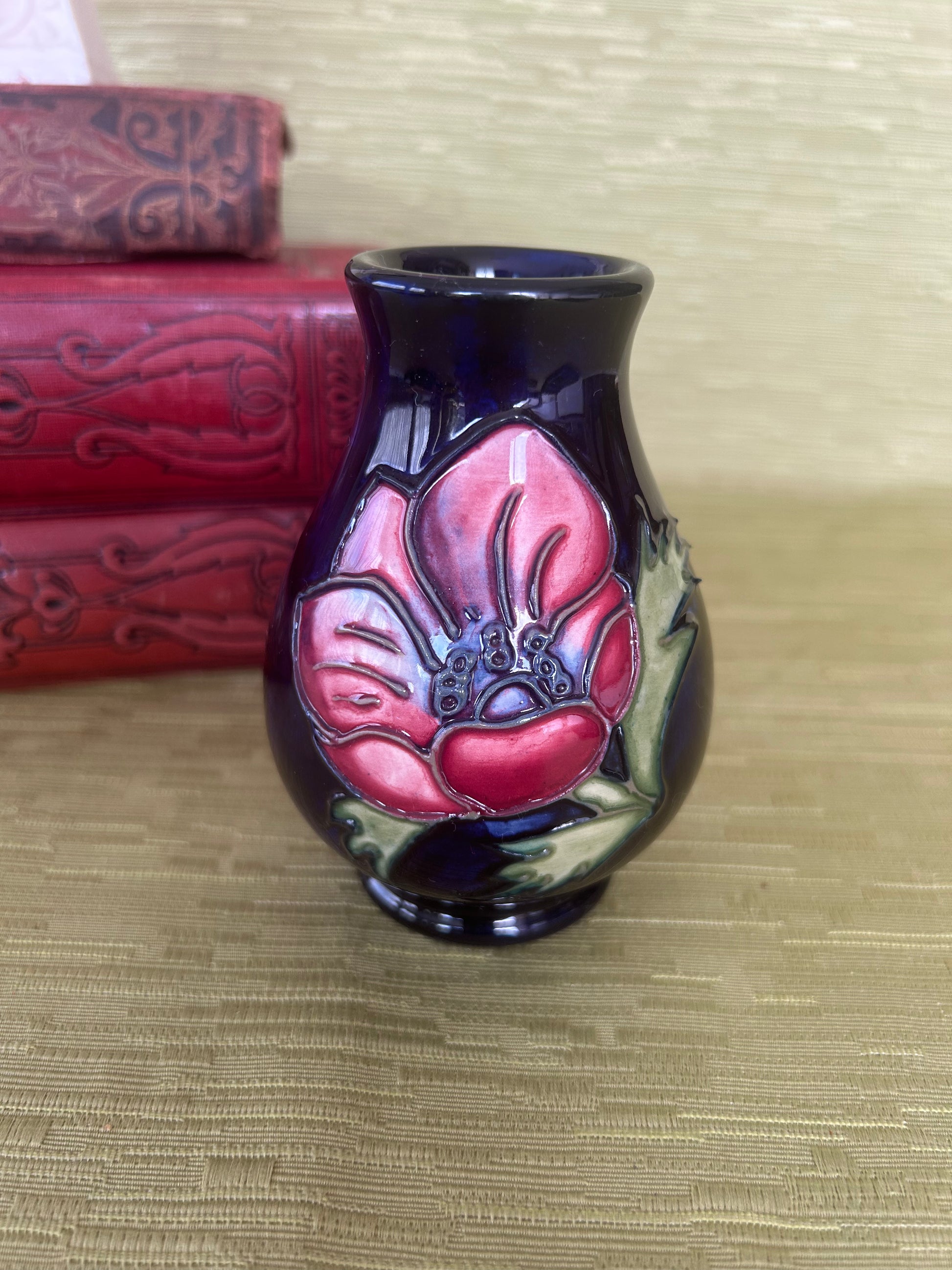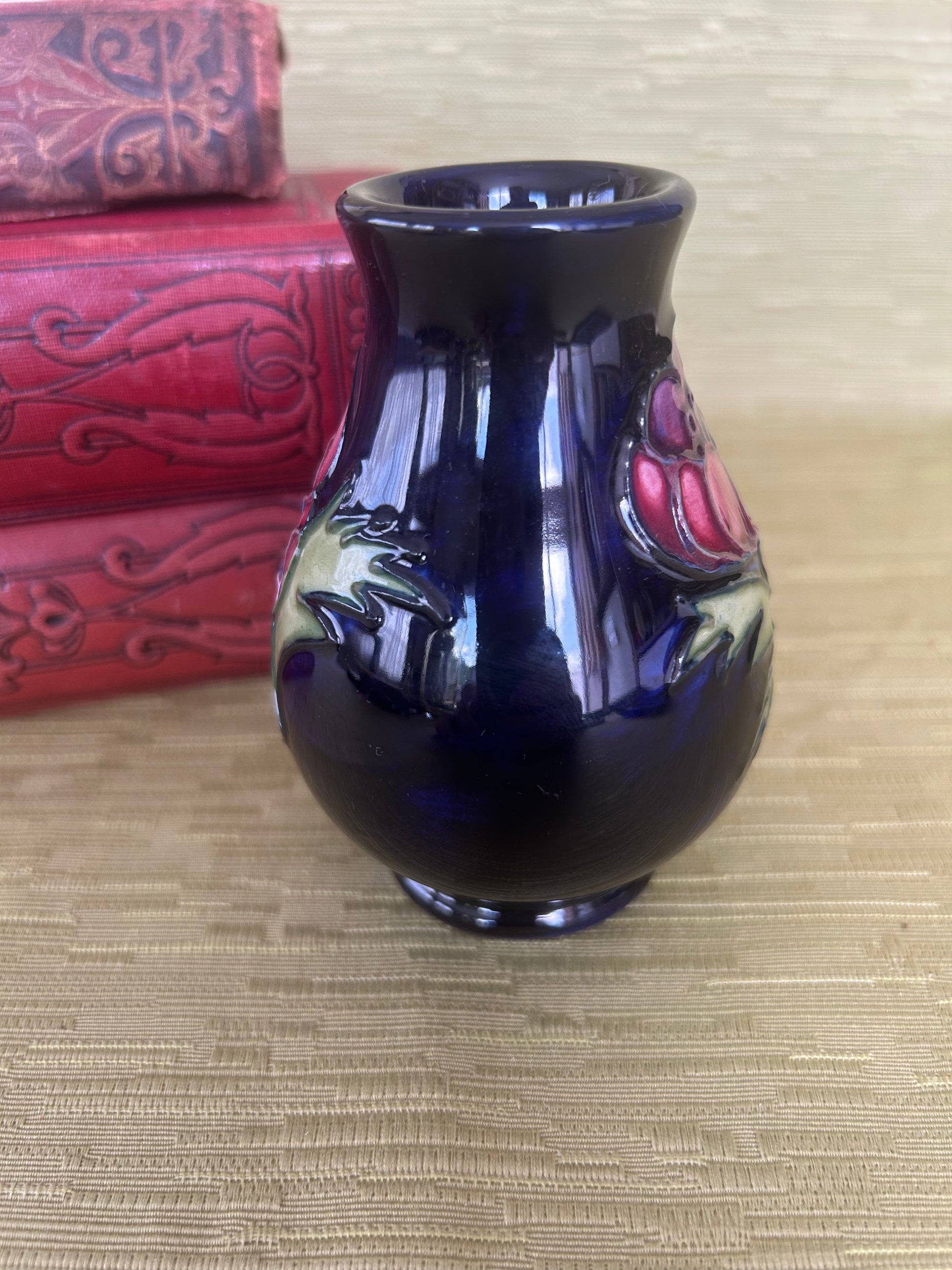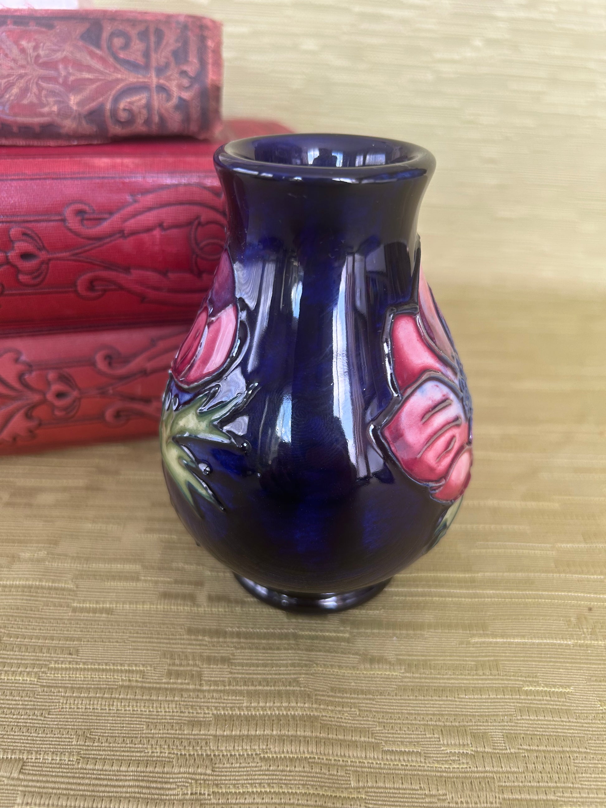 Moorcroft Pottery Anemone Blue Pattern Baluster Vase Lovely Condition. No chips, cracks or restoration. The approximate measurements are: 10cm H x 4cm top diameter x 4.5cm base diameter.
