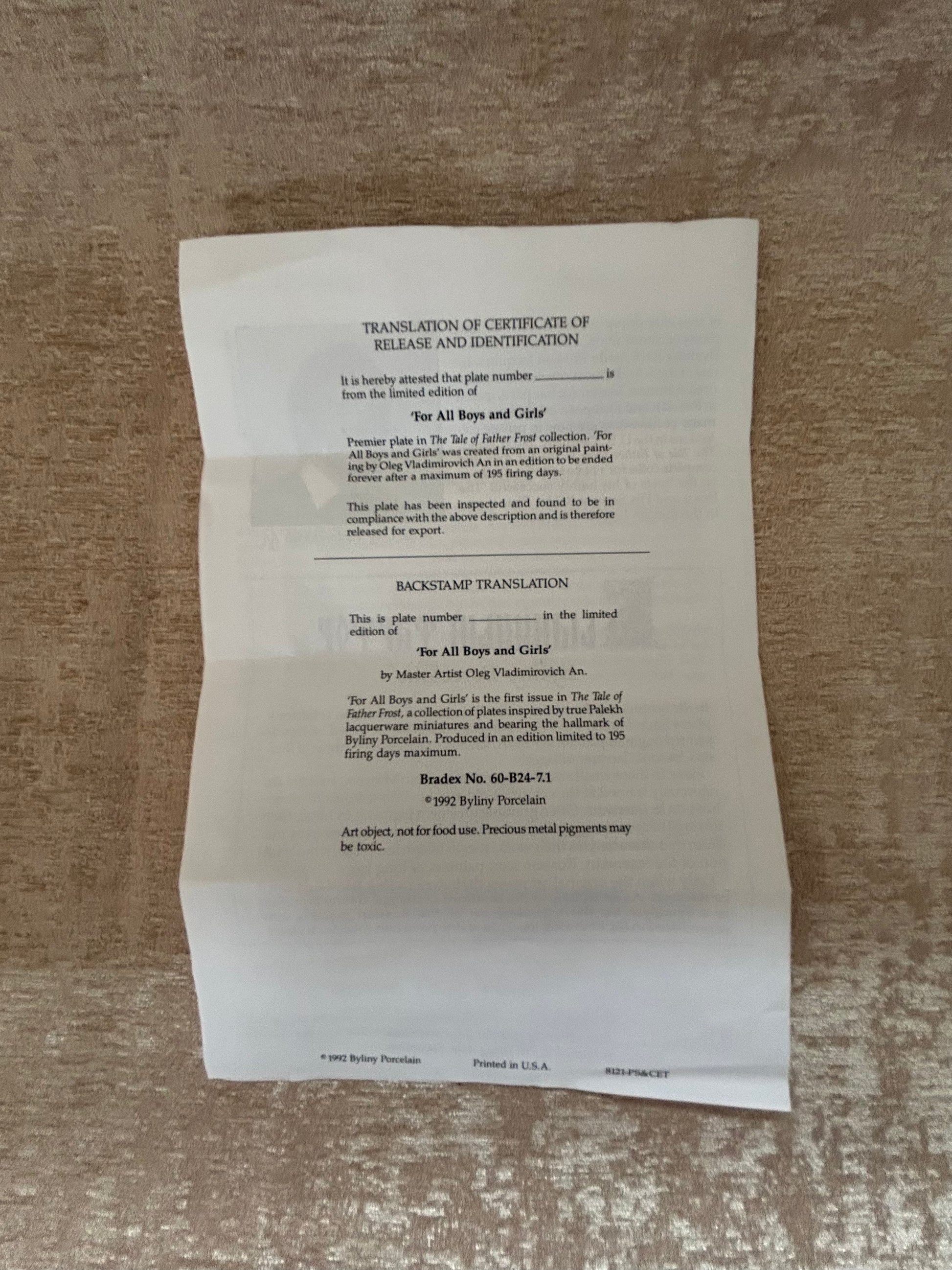 Rare Russian 1992 Tale Of Father Frost Plate Oleg Vladimirovich
