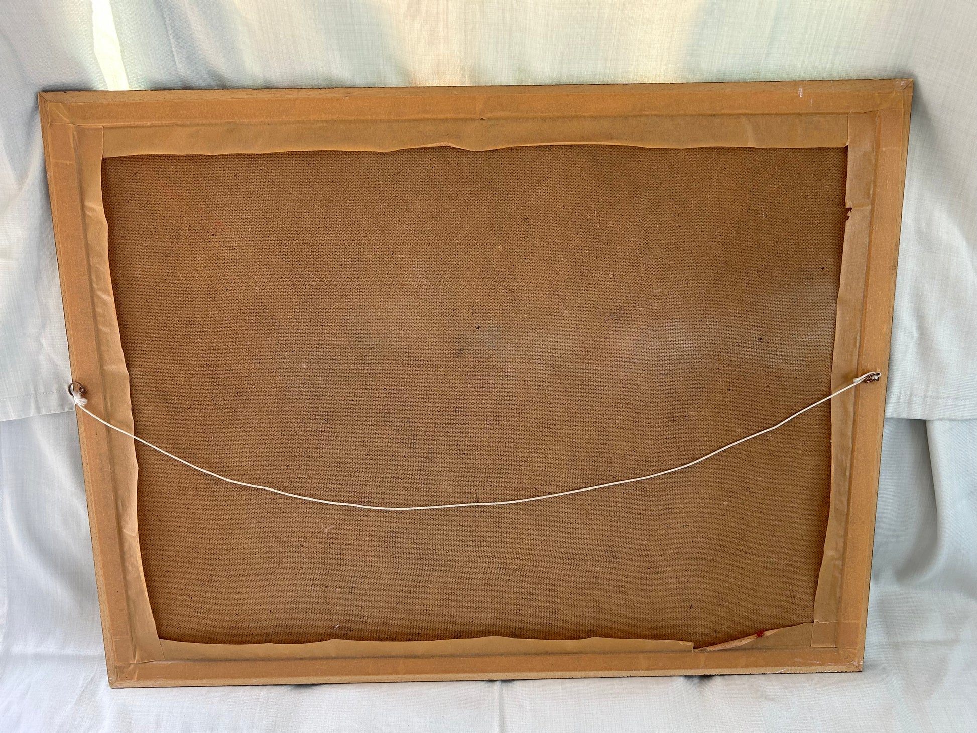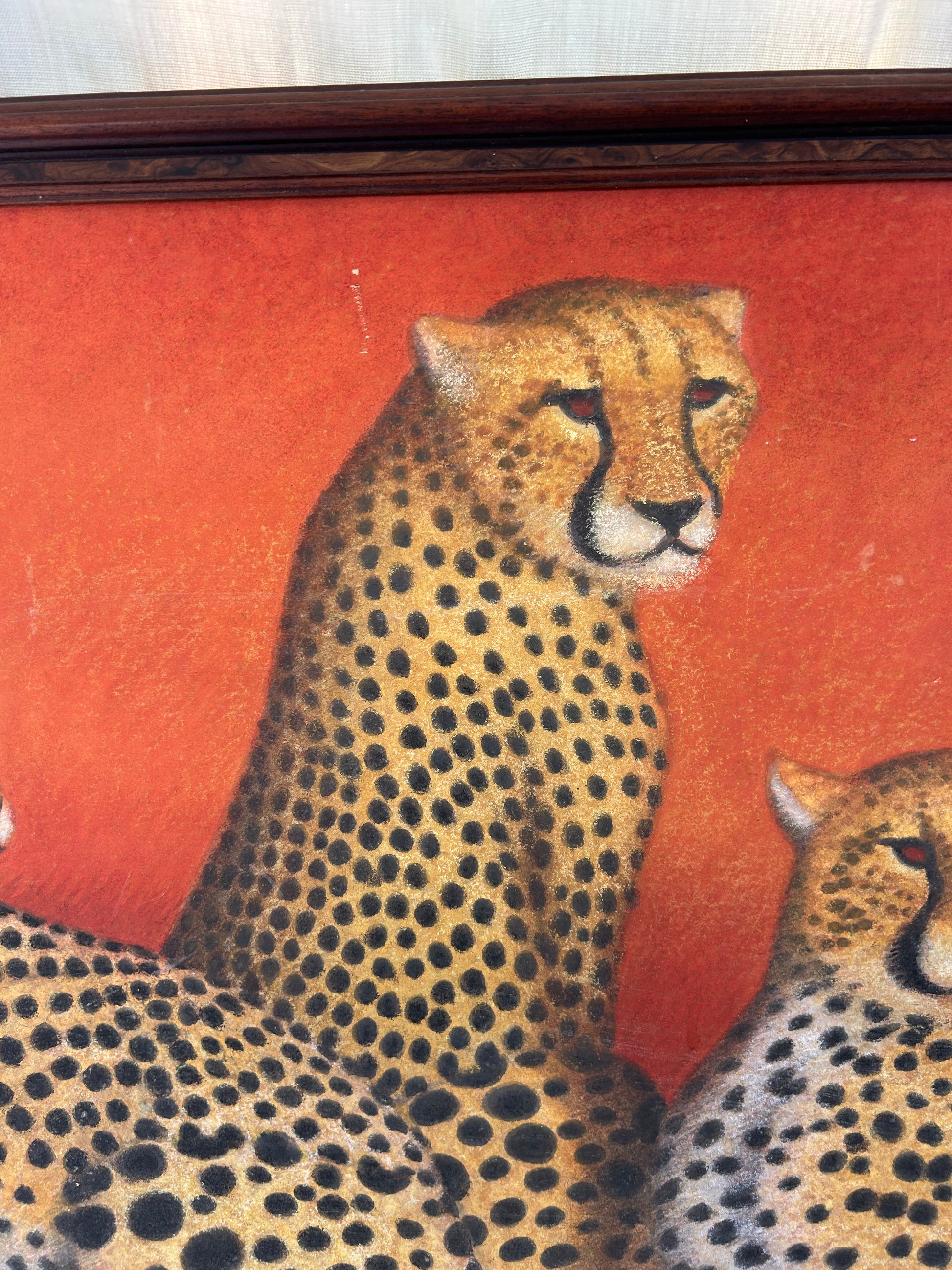 True Retro Vintage Original Painting In Orange with Leopards Signed And Framed