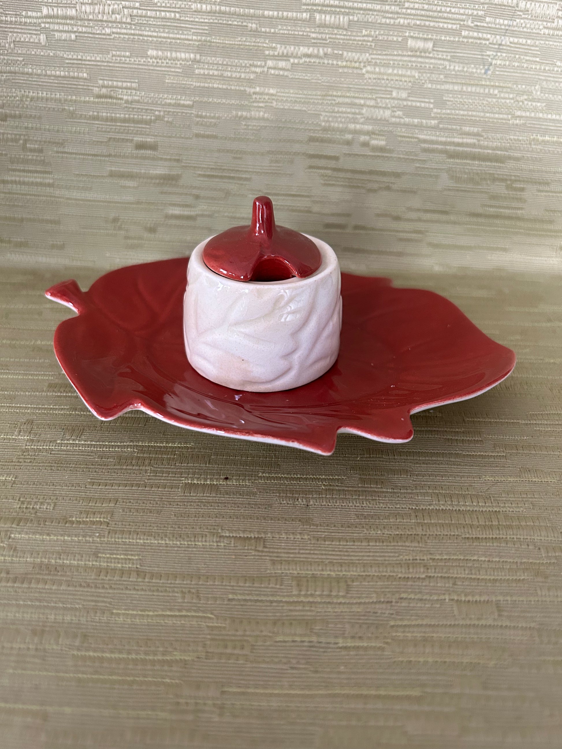 Vintage Carlton Ware Autumn Oak Leaf Plate & Preserve Jar Pot with Lid 1960's 1970's