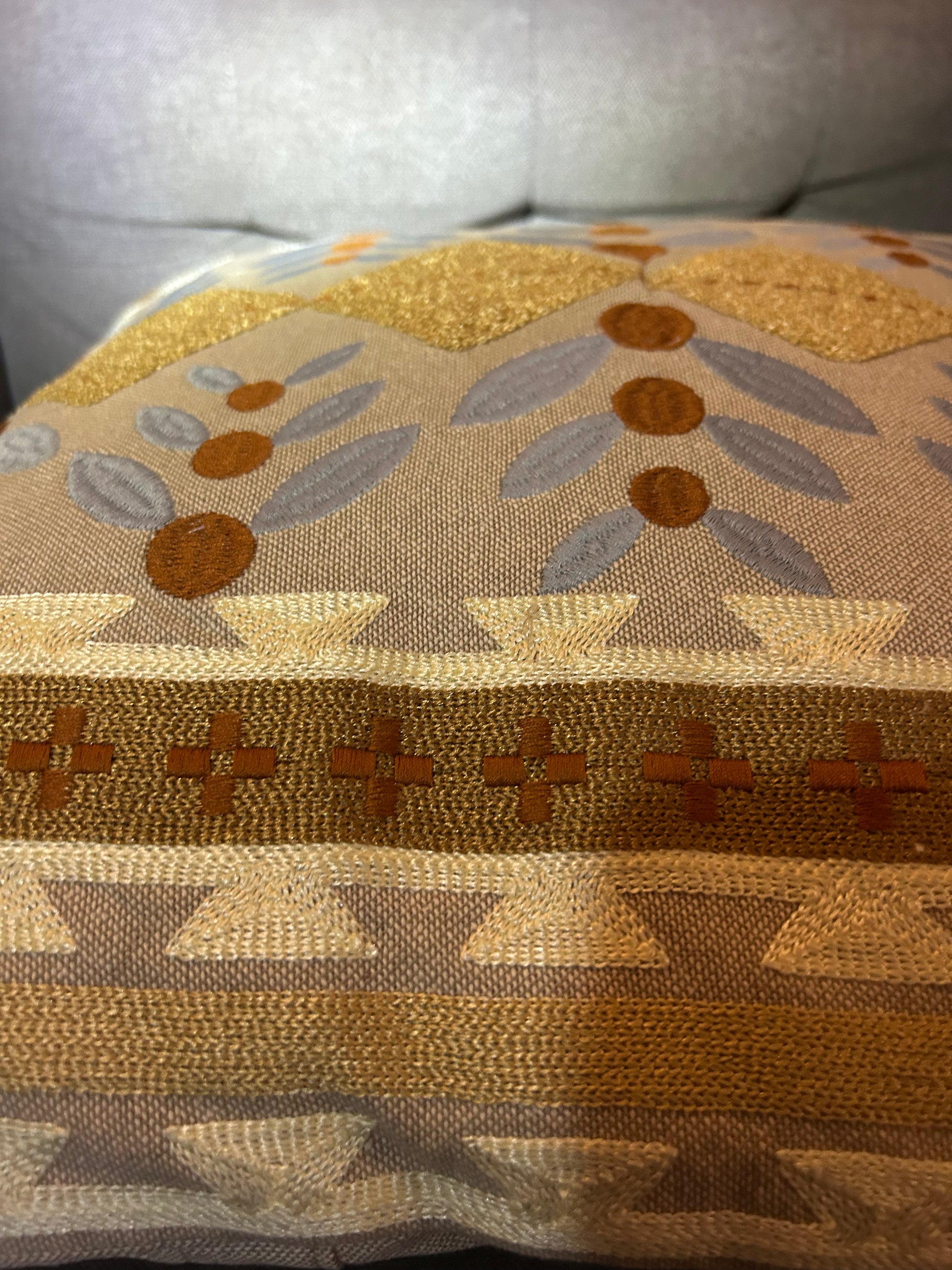 Vintage Retro Jaipur Scandinavian Style Cushion Embossed Design Brown Mustard. A truly stunning quality cushion, 4 available. Each cushion measures 17cm x 17cm. I have other similar designs listed in a variety of colours.