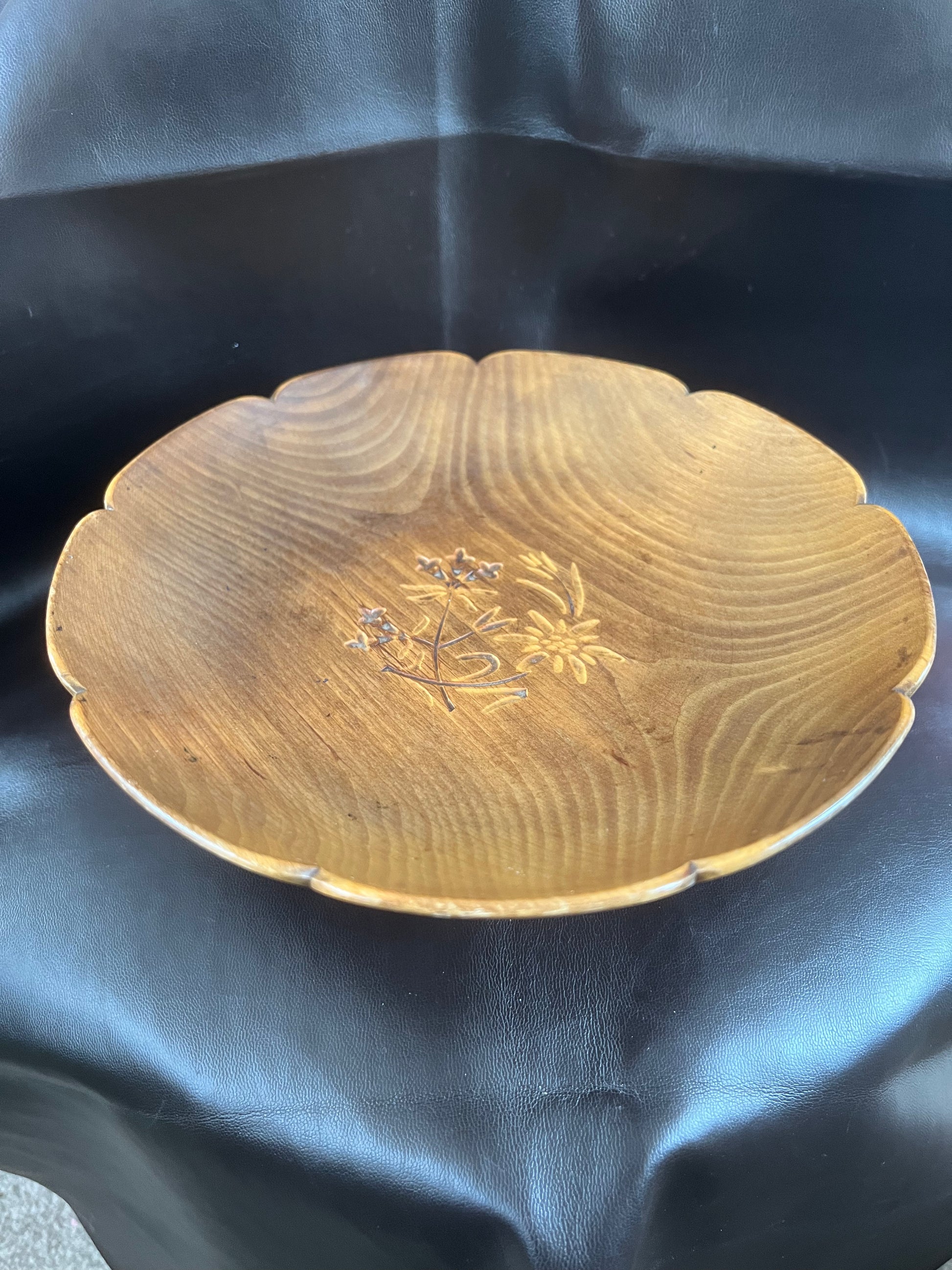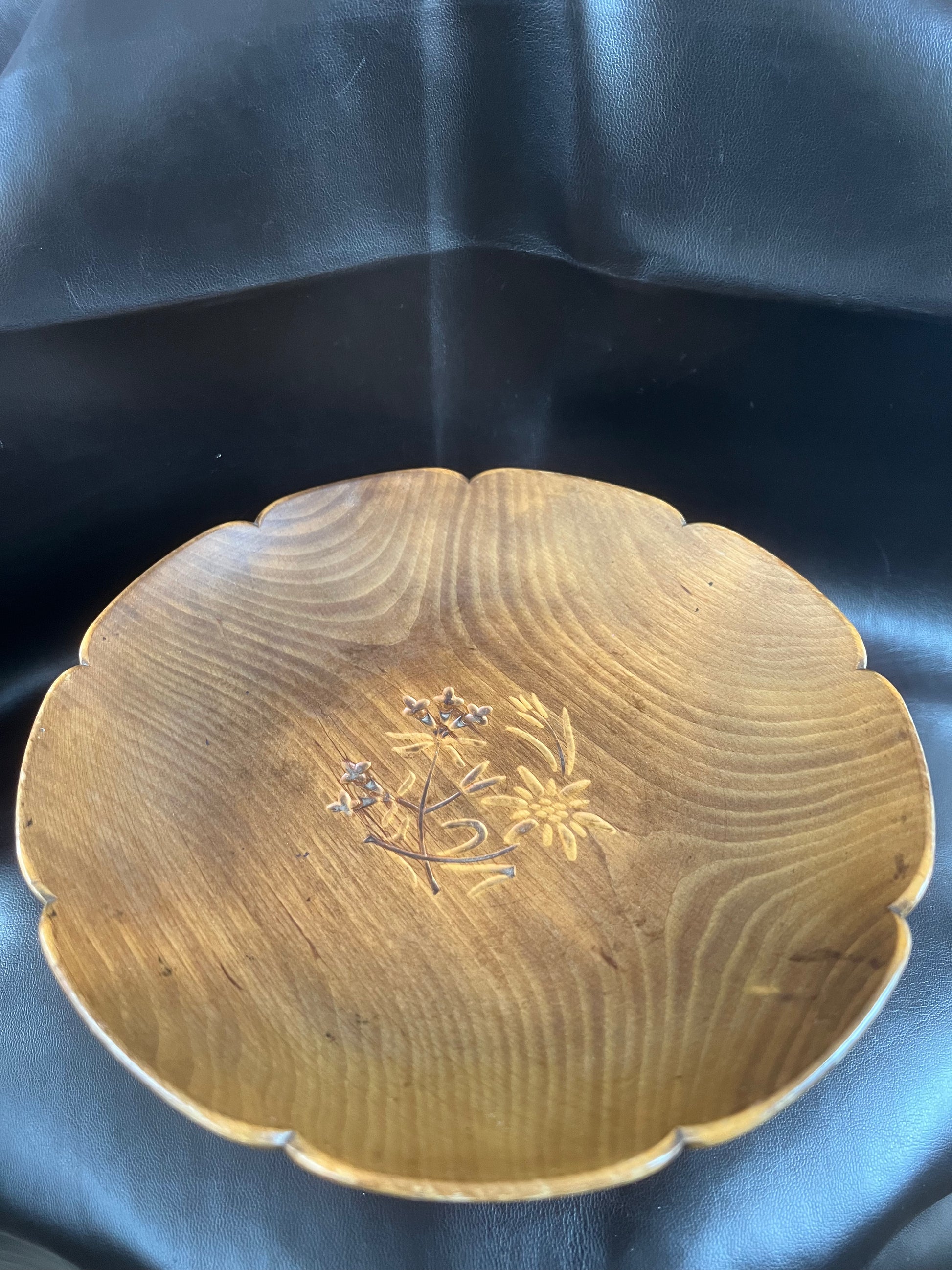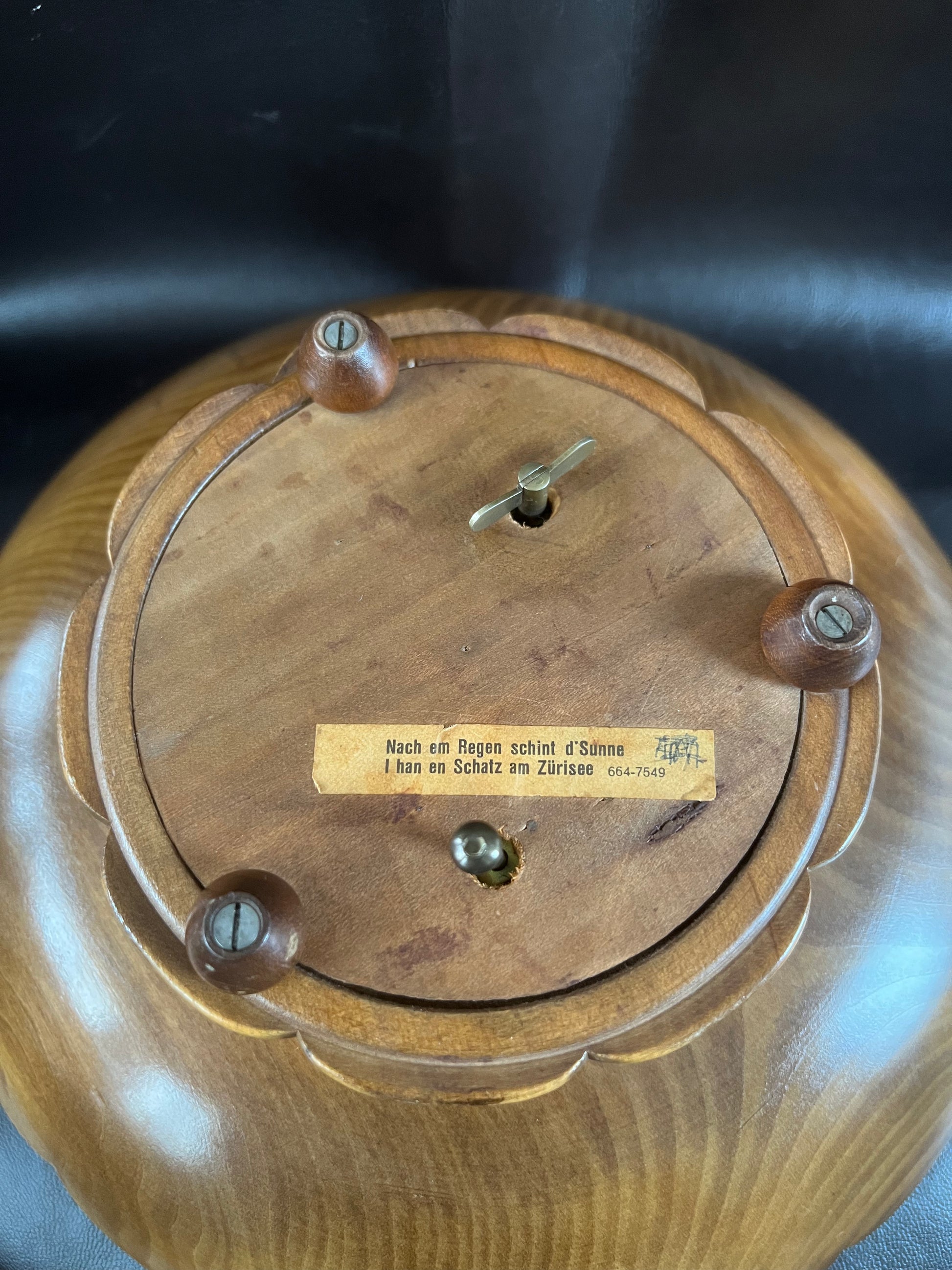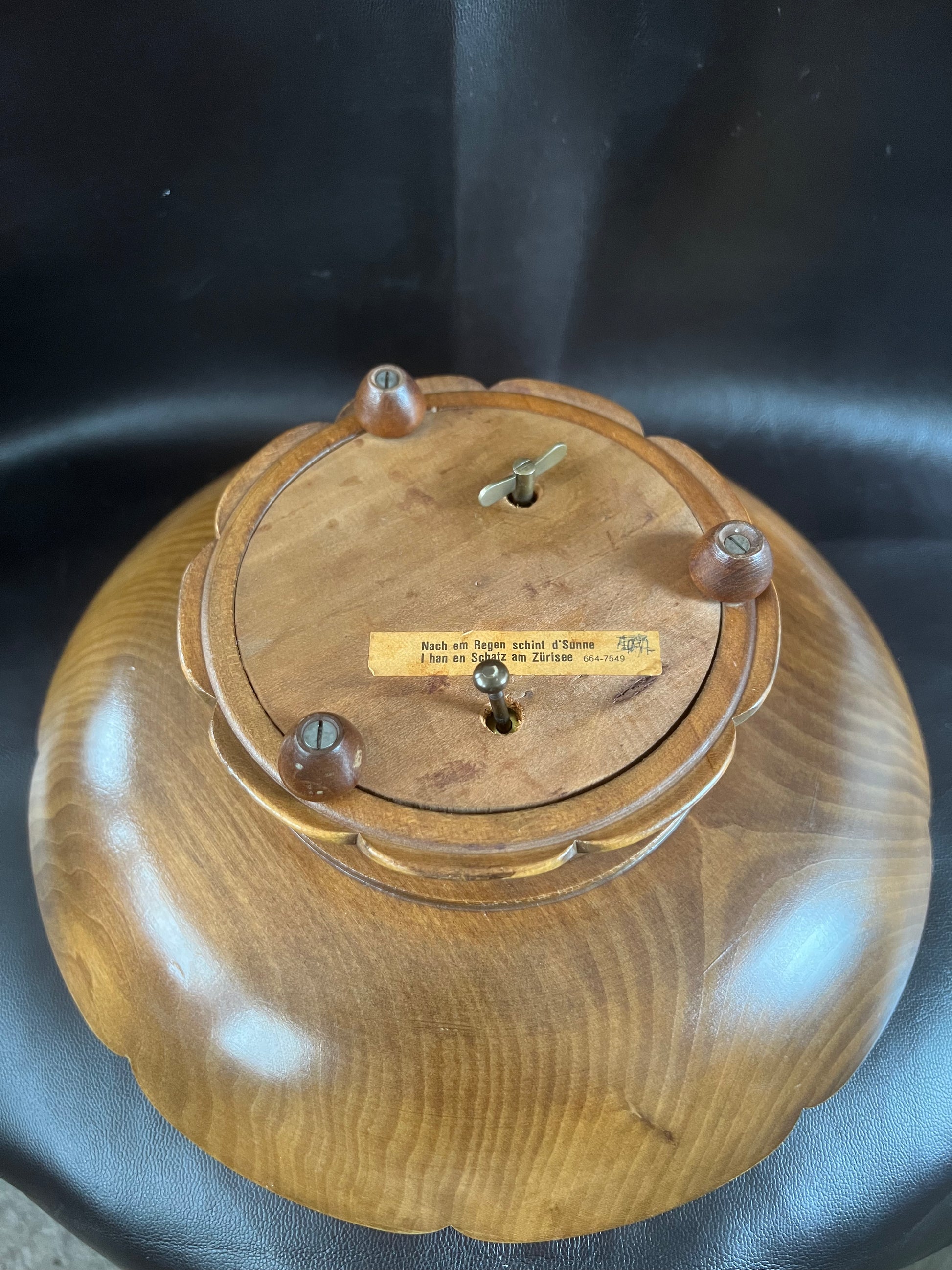 Vintage Swiss Musical Wooden Footed Bowl Fruit Bowl Carved Floral Design Fully Working